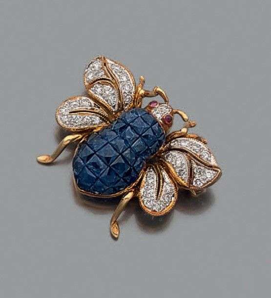 Broche "insecte" en or jaune 18k, le corps entièrement serti de saphirs ca