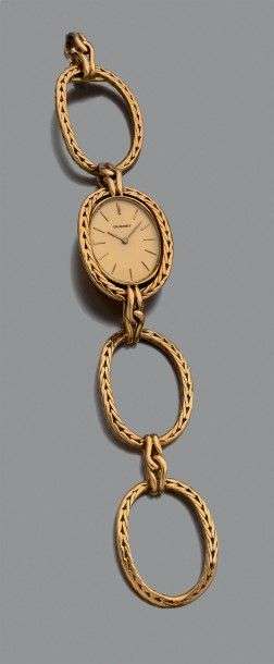 Montre de dame en or jaune 18K, bracelet composé de maillons ovales en or tressé, montre intégrée. Signée et numérotée.