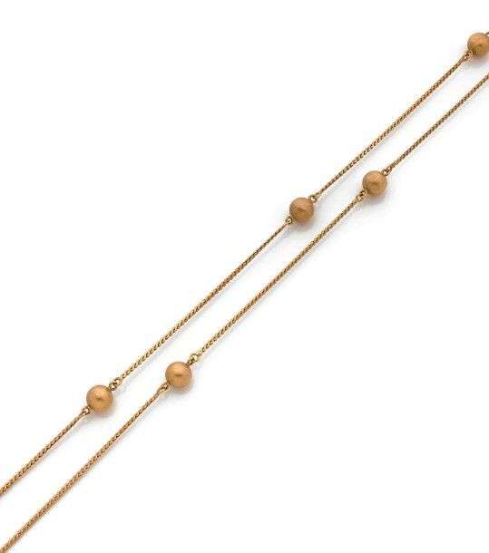 Sautoir en or jaune 18k rehaussé de perle en or jaune.