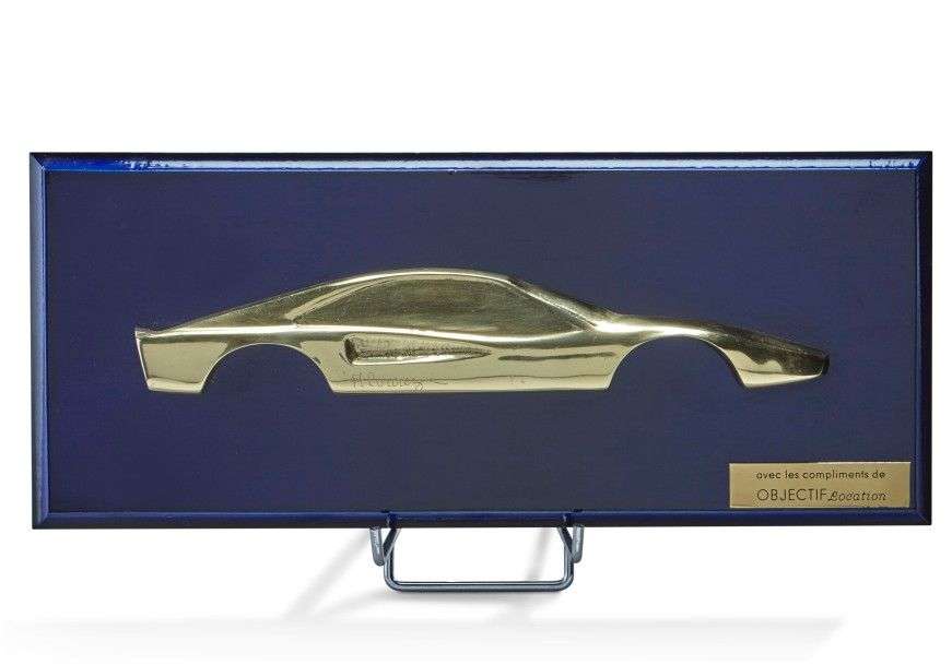 Profil de Ferrari 308 GTB, en bronze doré, signé Alvarez