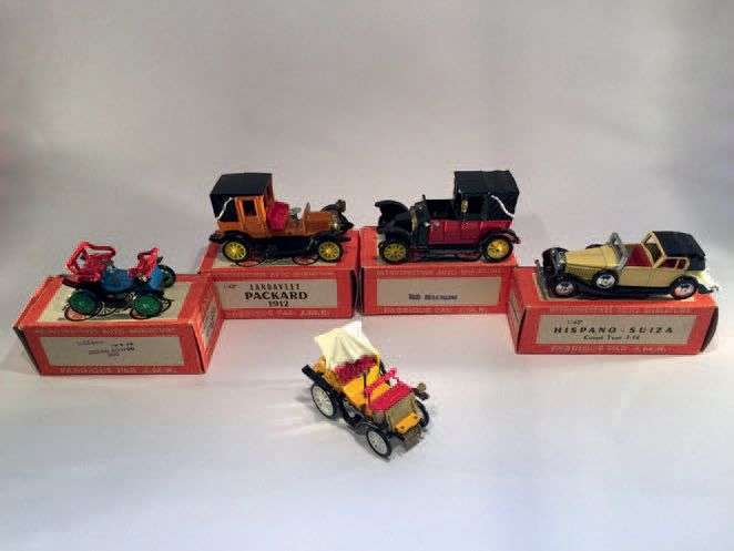 -1 landaulet Packard 1912, en boîte, -1 taxi de la Marne, en boîte, -1 vis à vis De Dion Bouton, en boîte, -1 Hispano Suiza, en boîte, -1 Rochet Schneider