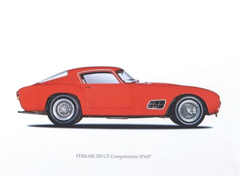 Pièce encadrée représentant la Ferrari 250 GT Competizione n°607