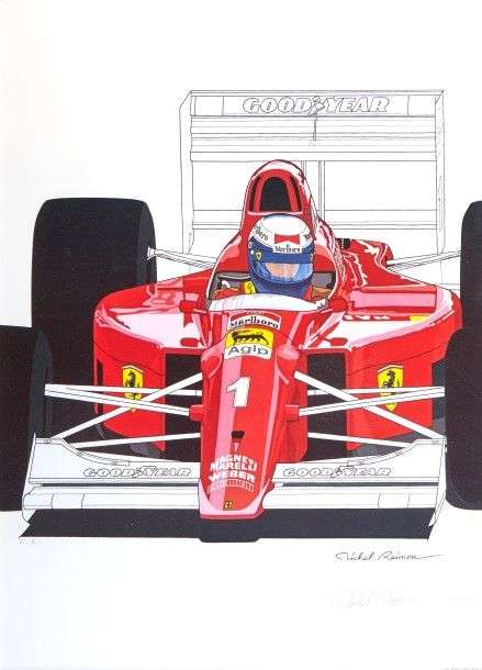 Lithographie figurant la Formule 1 FERRARI d'ALAIN PROST