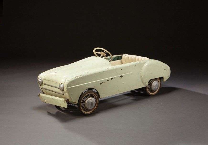 Voiture à pédales en tôle verte pâle