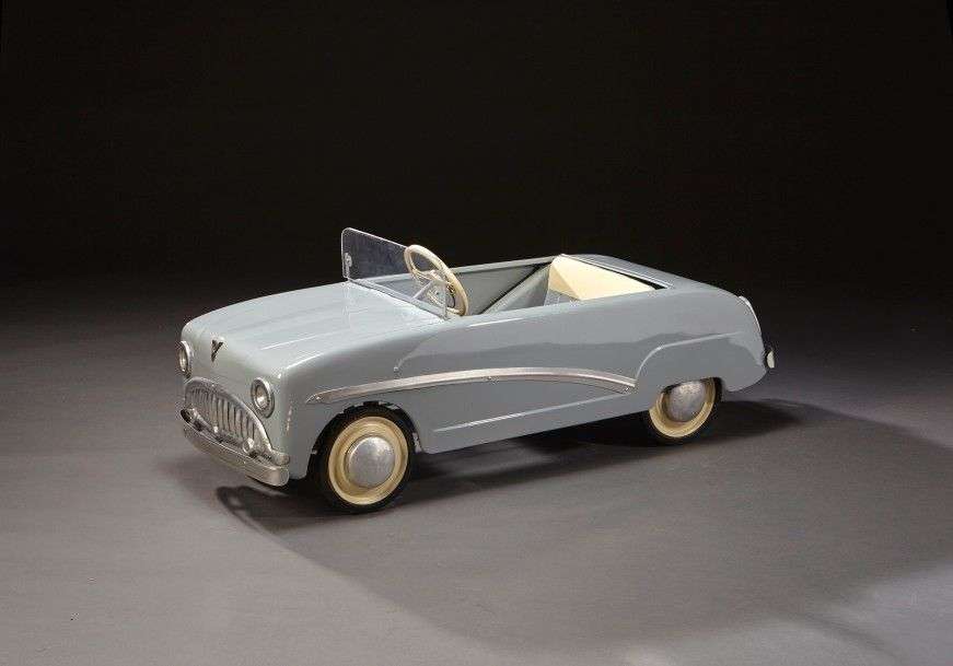 Voiture à pédales en tôle grise et beige