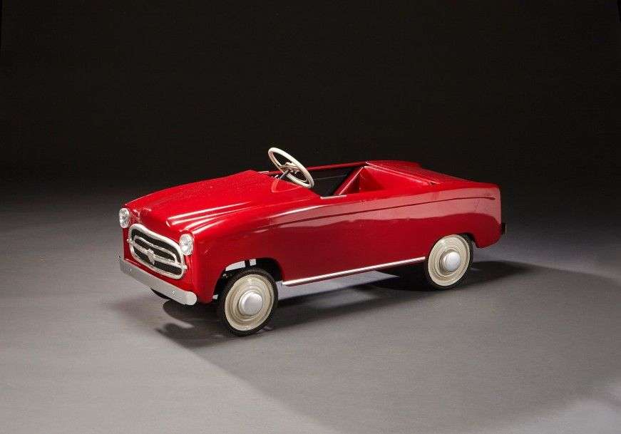 Voiture à pédales PEUGEOT 403 CABRIOLET en tôle rouge bordeaux