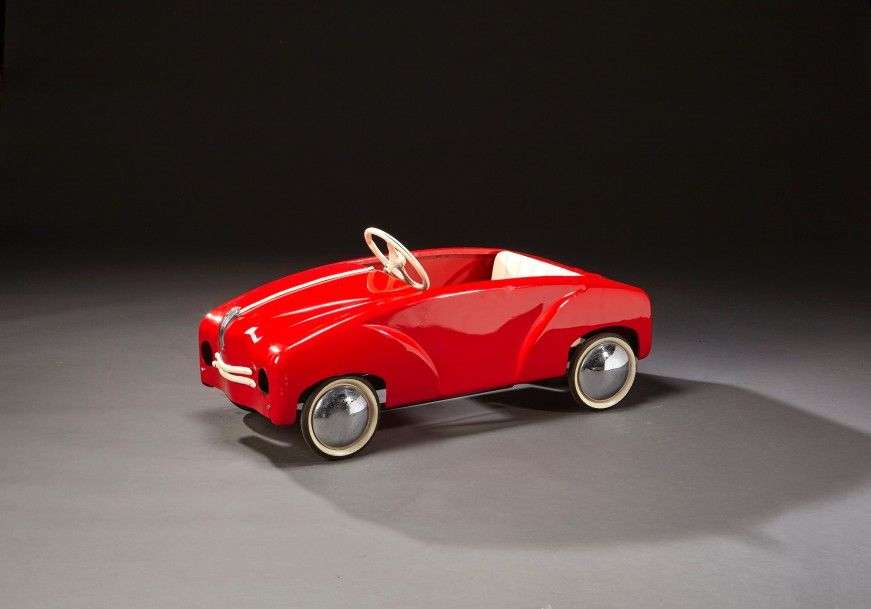 Voiture à pédales RENAULT 4 CV en tôle rouge et beige