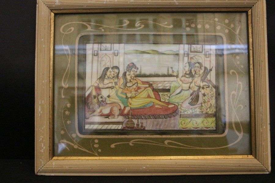 Peinture érotique . Inde, fin XIXème, début XXème s. Six femmes et un homme sont représentés dans un harem.