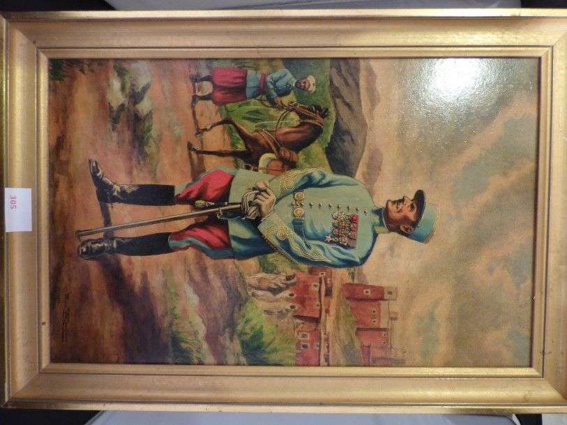 Peintre officiel de l'Armée «Capitaine du 8è Tirailleurs Marocains» vers 1930 Aquarelle, signée en bas à droite. Cadre doré. 43,5 x 27,5 cm