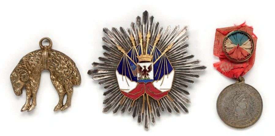France Bijou de la Toison d'or Plaque d'un ordre fantaisie, 1 rosette, Commémorative Napoléon Ier datée 1840.