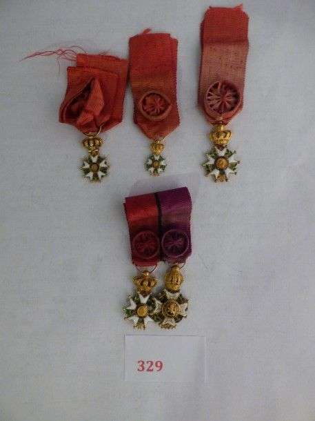 Lot de 4 étoiles miniatures d'Officier, Louis XVIII, IInd Empire On joint une couronne de Belgique.