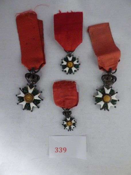 Lot de 4 étoiles de Chevalier, en réduction, Restauration, Louis-Philippe et IInd Empire.