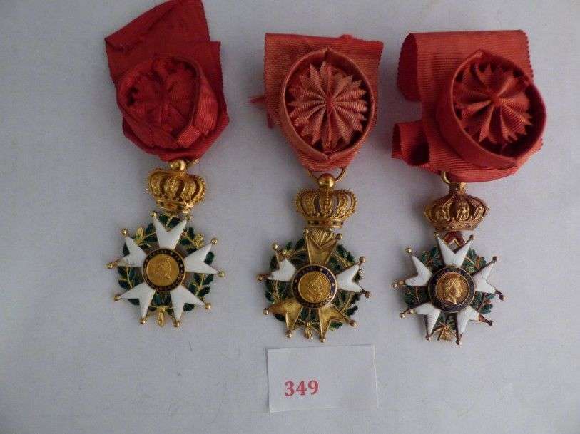 Lot de 3 étoiles d'Officier, Louis-Philippe, IInd Empire.