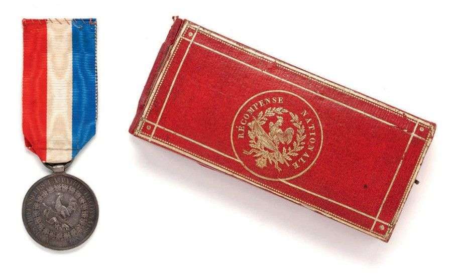 Argent, ruban, gravé sur la tranche Donné par le Roi des Français. Avec un écrin pour la Croix de Juillet.