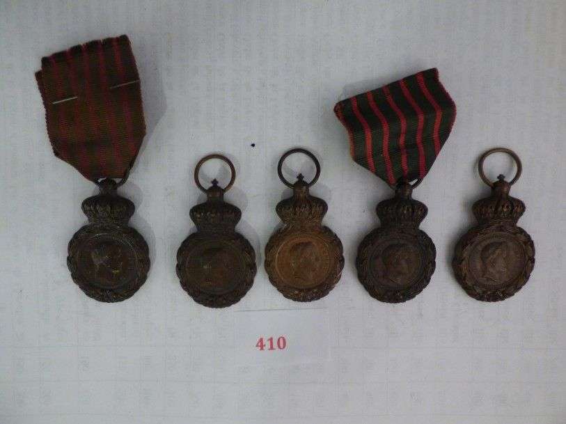 Lot de 5 décorations. Bronze, rubans. 3 SR