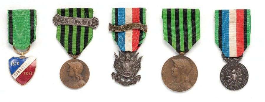 Lot de 5 médailles d'Anciens combattants 1870-1871, modèles différents.