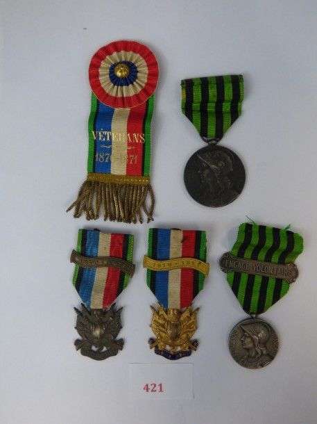Lot de 5 médailles d'Anciens combattants, modèles différents.