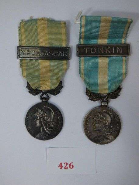 Argent, rubans, 2 agrafes à clapet, Tonkin et Madagascar.