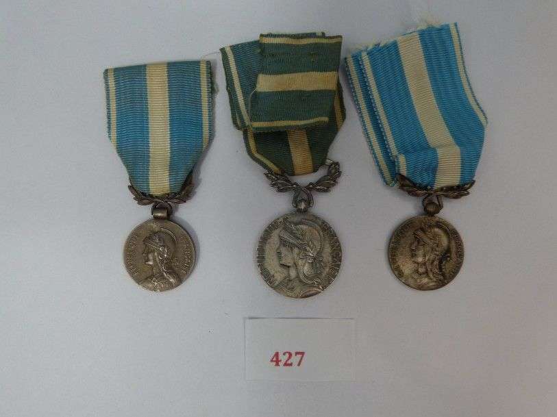 Lot de 3 médailles, tailles différentes. Métal, rubans.