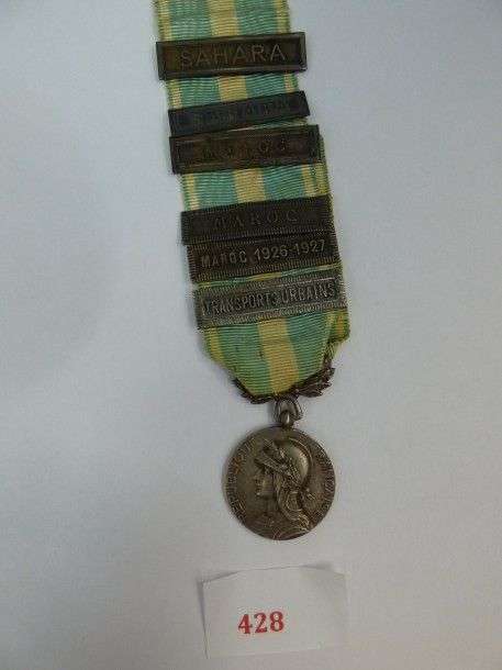 Argent, ruban, 6 agrafes Sahara (x2), Maroc (x2), Maroc 1926-1927, Transports urbains.