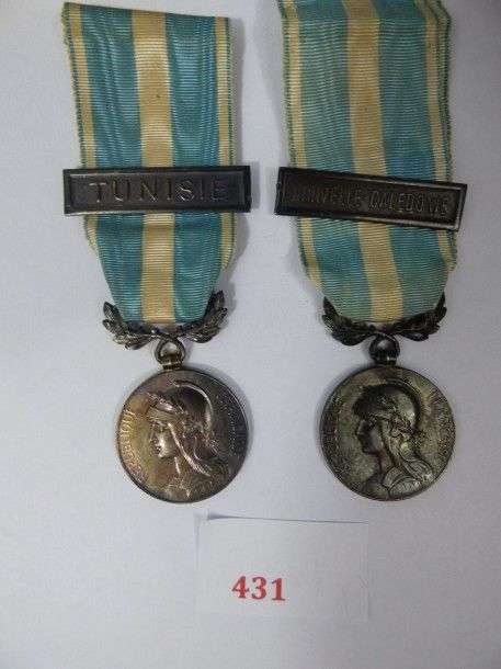 Argent, rubans, 2 agrafes à clapets Tunisie, Nouvelle-Calédonie.