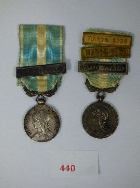 Argent, rubans, 4 agrafes Maroc, Maroc 1925, Maroc 1926, Maroc 1928-1929.
