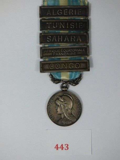 Argent, ruban, 5 agrafes à clapet, Algérie, Tunisie, Sahara, Congo, Afrique équatoriale française.