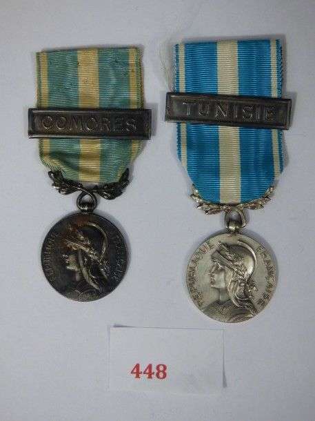 Argent, rubans, 2 agrafes à clapet, Comores, Tunisie.