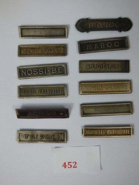 Lot de 12 agrafes pour Médaille coloniale.
