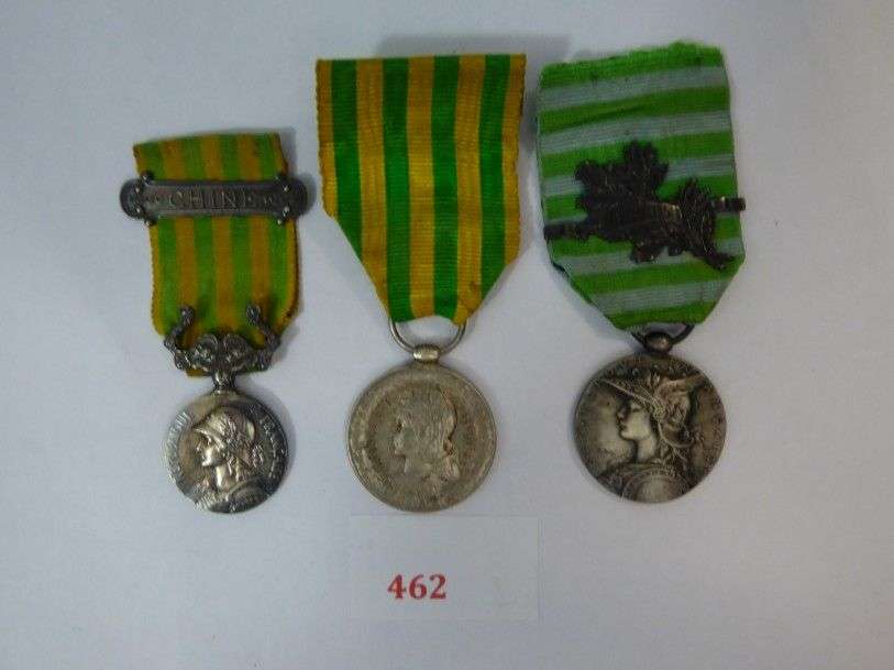 Lot de 3 décorations, Chine Tonkin, Madagascar. Rubans.