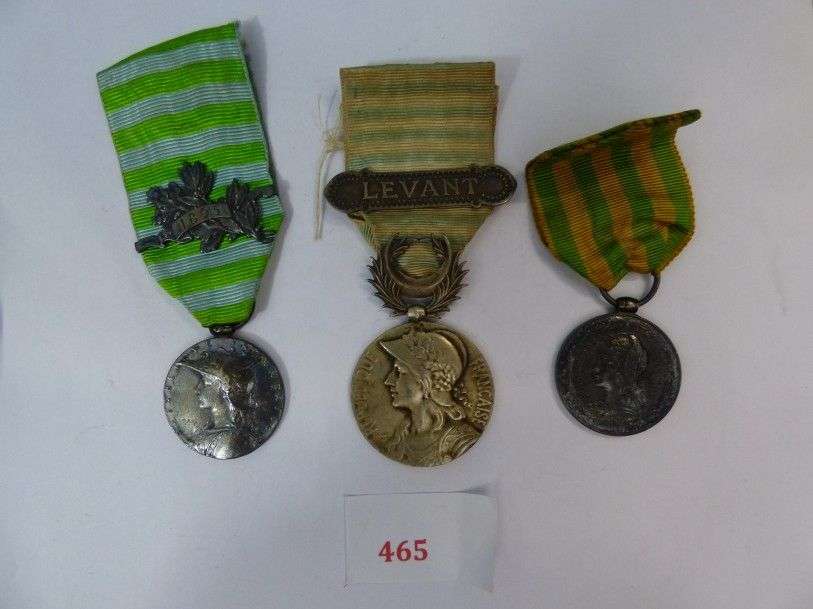 Lot de 3 décorations, Levant, Tonkin, Madagascar. Rubans.