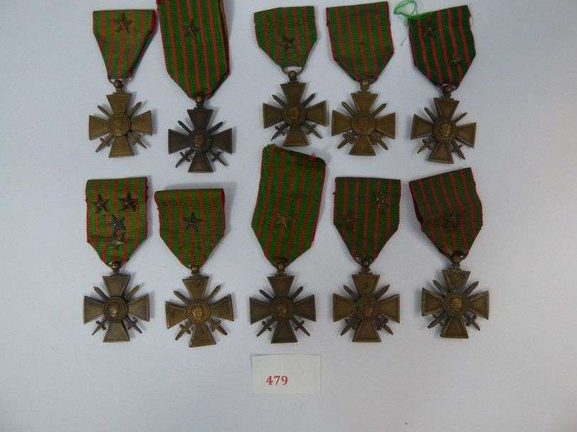 Lot de 10 médailles, dates différentes. Bronze, rubans.