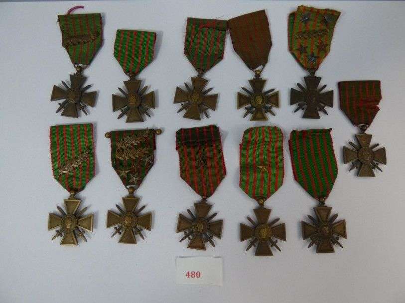 Lot de 11 médailles, dates différentes. Bronze, rubans.