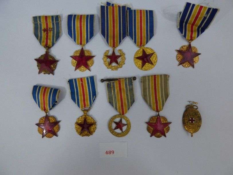 Lot de 10 médailles, modèle différents. Bronze doré, émail, rubans. (1SR)