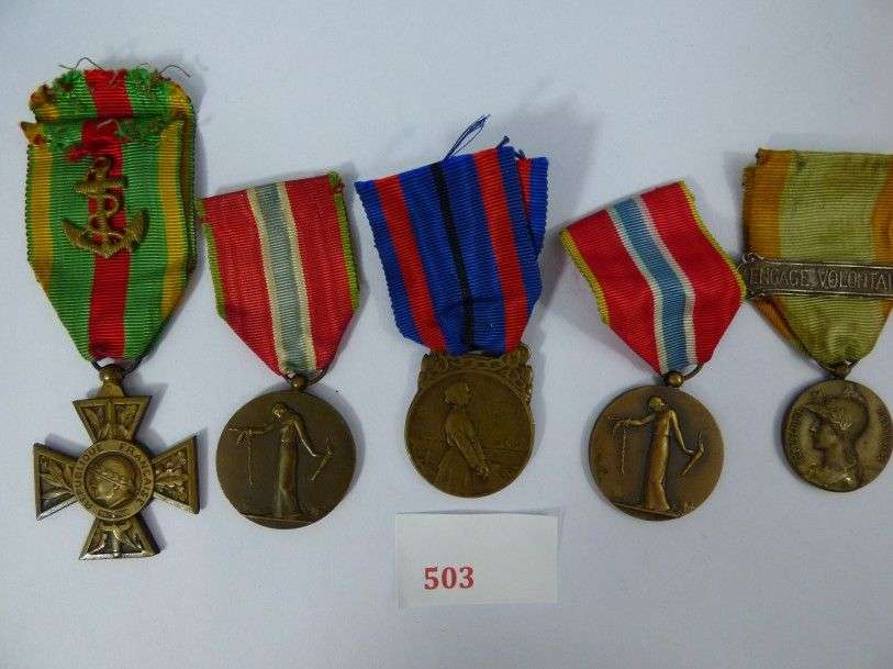 Lot de 5 médailles: Prisonniers civil (x2), Victime de l'Invasion, Volontaire (x2)