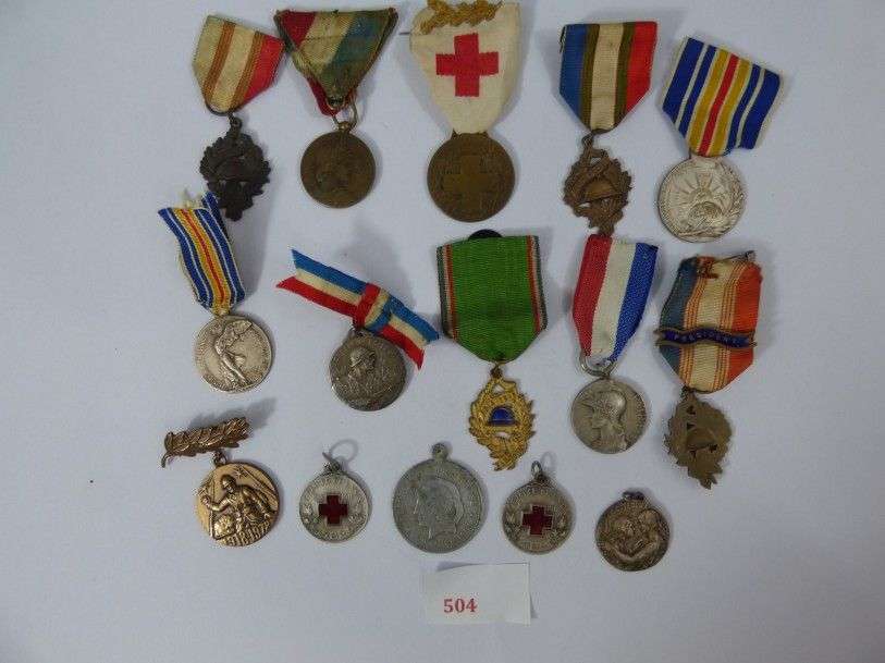 Lot de 15 médailles: Commémoratives, Croix-Rouge, Anciens combattants...