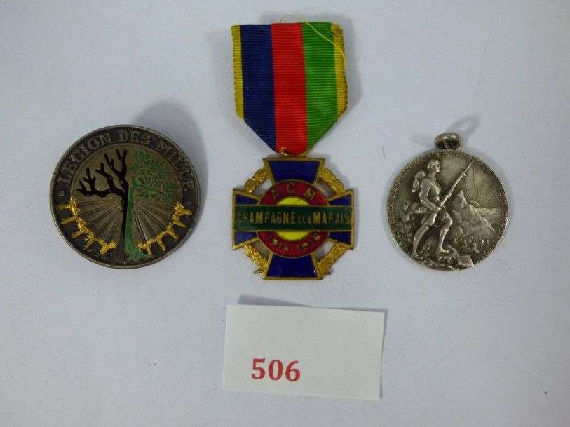 Lot de 3 médailles: Légion des mille, Champagne les Marais, 22è Bataillon de Chasseurs Alpins en