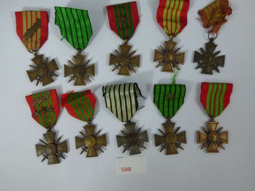 Lot de 10 médailles, millésimes différents. Bronze, rubans.