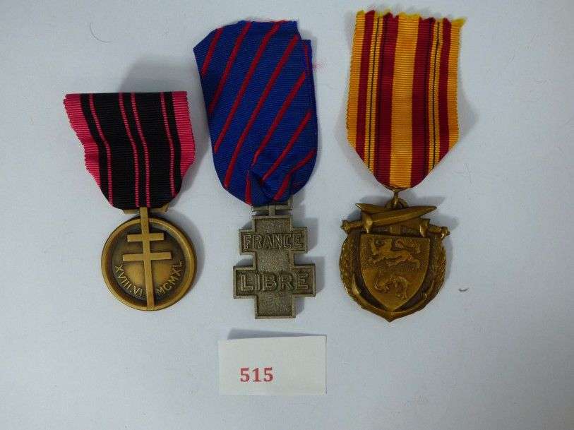 Lot de 3 médailles: Dunkerque, Résistance, France libre.