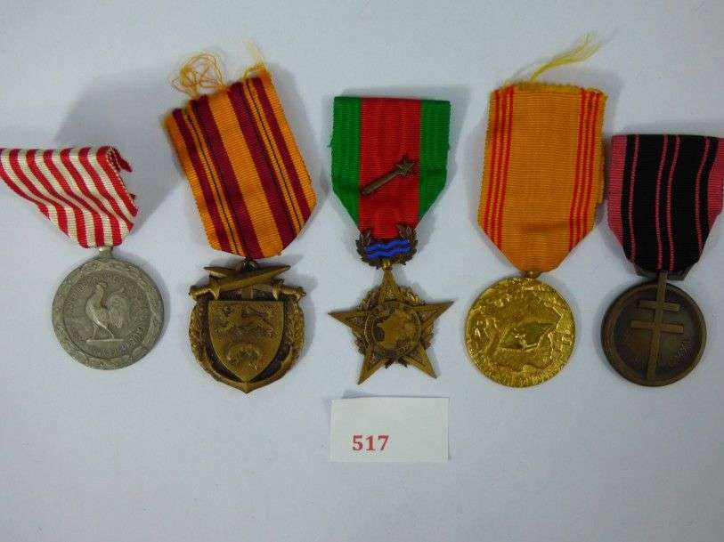 Lot de 5 médailles: Réfractaire, Dunkerque, Résistance, Rhin et Danube, Italie.