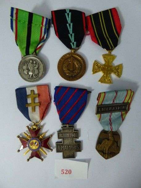 Lot de 6 médailles: Résistance polonaise, France libre, Prisonnier, Commémorative, Résistance volontaire, Franco-britannique.