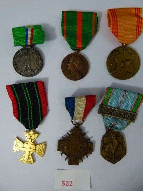 Lot de 6 médailles: Commémorative, Réfractaire, Engagé volontaire, Résistance volontaire, Prisonnière, Brancardier.