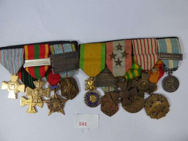 Lot de 12 médailles montées en 2 barrettes.