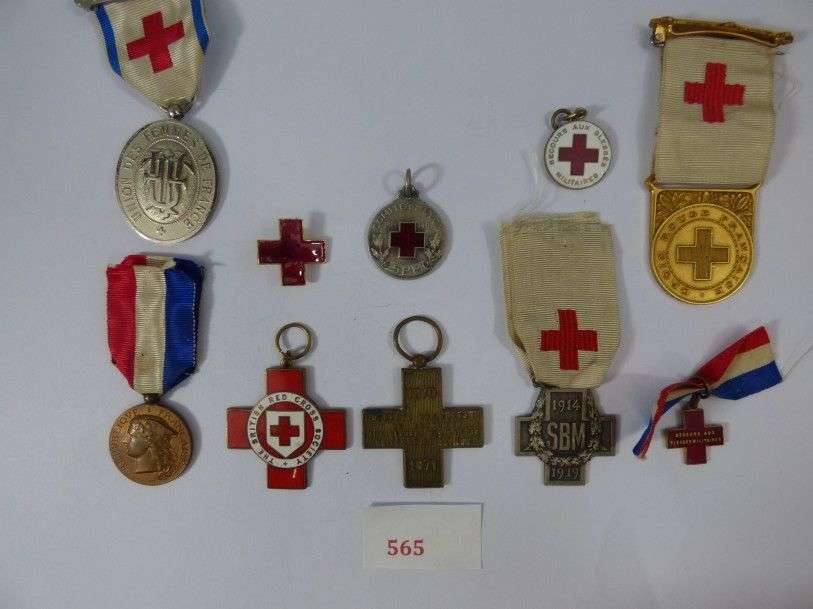 Lot de 10 décorations de la Croix-Rouge. Rubans.