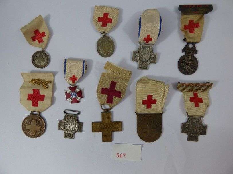 Lot de 10 décorations de la Croix-Rouge. Rubans.
