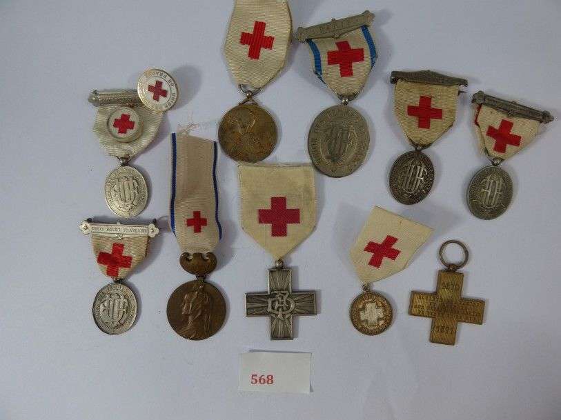 Lot de 10 décorations de la Croix-Rouge. Rubans.