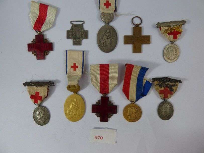 Lot de 10 décorations de la Croix-Rouge. Rubans.