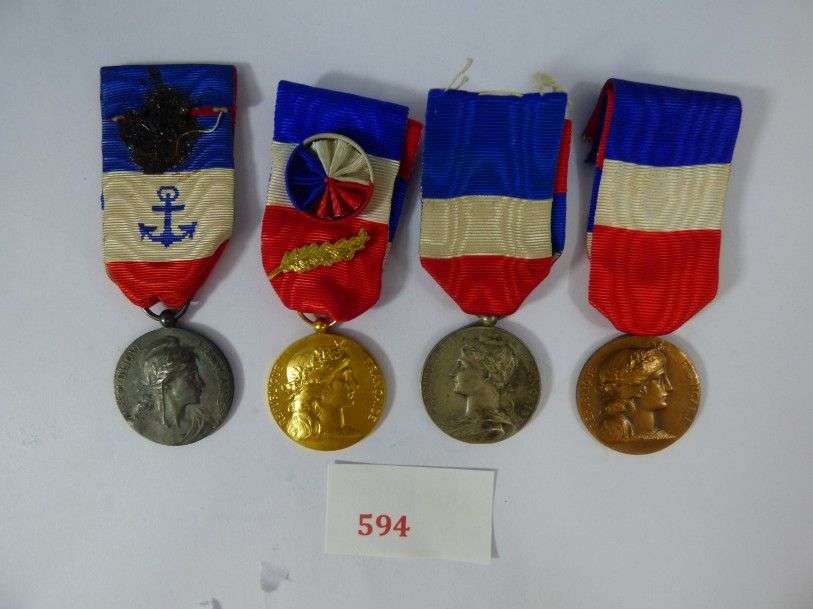 Lot: 2 du Ministère de la Guerre, 1 de la Marine, 1 du Travail en or. Rubans.
