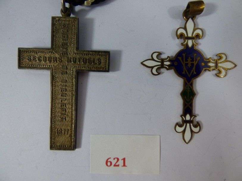Lot de 2 décorations: Secours mutuelle, Croix de Chambord. SR.