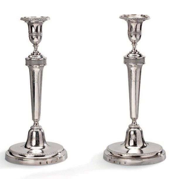 Paire de bougeoirs en argent à motifs de feuilles lancéolées et de feuille